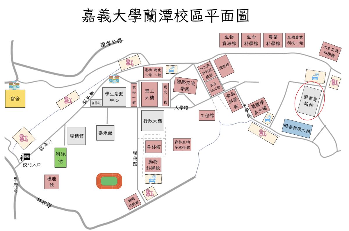 1.「國道一號」 於 264-嘉義出口下交流道,往嘉義方向行駛進入北港路→世賢路二段右轉→高鐵大道左轉→經垂楊大橋進入垂楊路→彌陀路→至忠義橋即左轉進入八掌溪防汛道路→循路標即可抵達嘉義大學蘭潭校區。